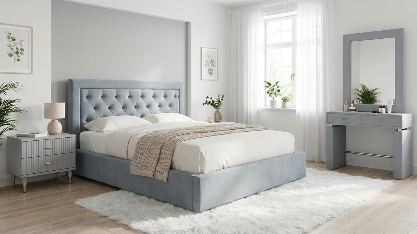 Кровать Дарина с прямым изголовьем и каретной стяжкой